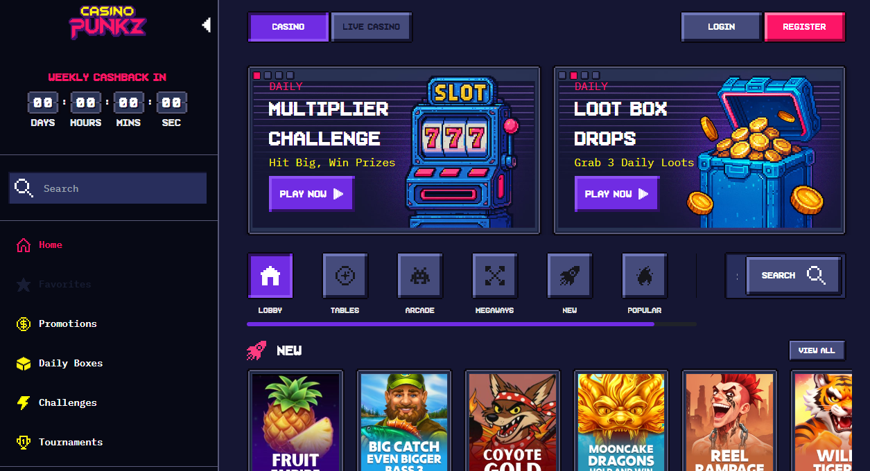 CasinoPunkz is a modern crypto casino that focuses on speed, usability, and a strong visual identity. Designed for players who prefer cryptocurrency gambling, the platform removes traditional banking barriers and delivers a streamlined experience built entirely around digital assets. Its bold branding and clean interface help it stand out among more conventional-looking crypto casinos.